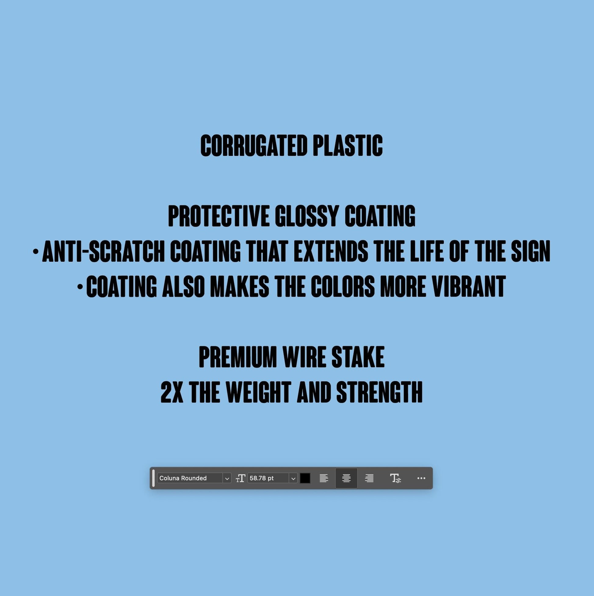 This plastic yard sign is perfect for protests and rallies, giving off a strong activist vibe. Relevant for activists, protesters, and individuals passionate about politics and social issues. Your choice of single or double-sided.