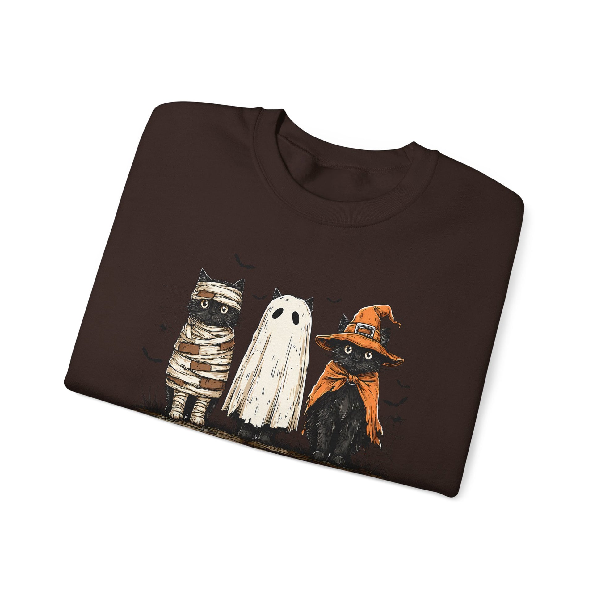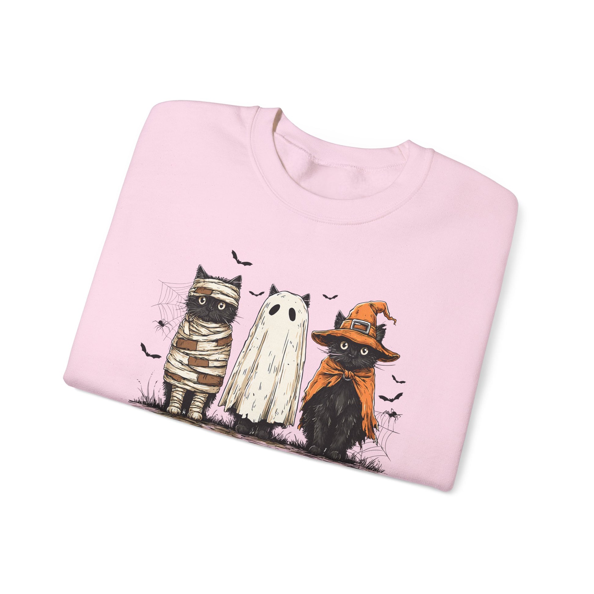 Halloween Black Cat Sweatshirt, Spooky Cute Gildan 1800 Crewneck with 3 Cats in Costumes, Cozy Fall & Halloween Apparel (12 Colors)